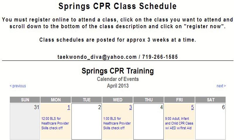 Emergency Response Training, community events and presentations. Park and the University of Colorado, Colorado Springs. and first aid classes. Call the Colorado Springs office of the American Heart Association ... Retrieve Doc